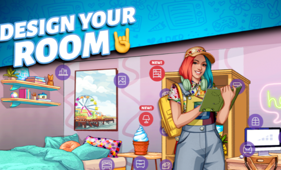 1、按照你内心的设计师愿望装饰你的大学宿舍。无论你的风格是滑板公园、日本动漫、VIP休息室还是黑魔法 -你都可以拥有一切,并参加宿舍设计大赛!
