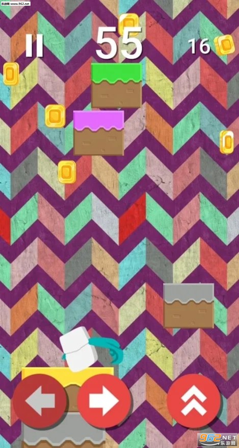 在街机跳跃和飞行游戏中,你需要快速反应,跳跃,飞行和攀爬,而不要犹豫太久。如果热巧克力到达他的话,那么起泡的热巧克力正在上升,你的锦葵人会立即死亡。小心不要被块压碎,尽可能长时间避免使用热巧克力,以尽可能地达到并保持棉花糖在跳跃游戏中保持活力。当你跳过这个令人上瘾的无尽跳跃街机游戏时赚取金币。