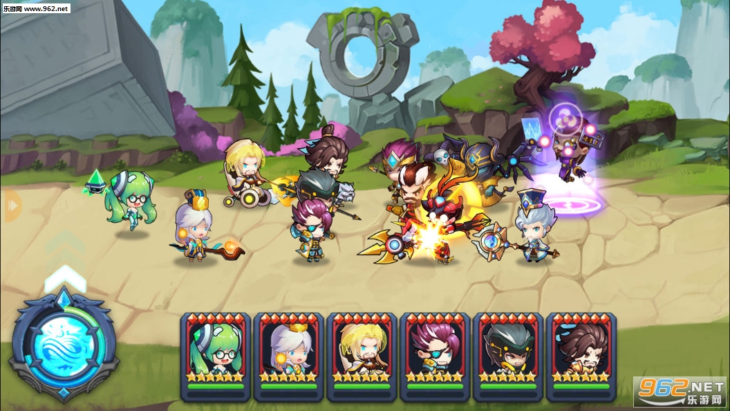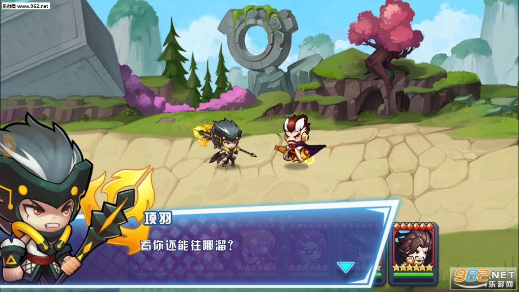 Q版的回合制卡牌游戏,游戏故事的背景是刘邦项羽与秦始皇战斗,各个不同时代的人物都穿越过来进行一场大乱斗,游戏中可以上阵多个角色,有着合击技能,玩法丰富。