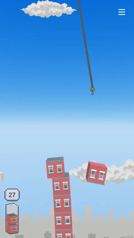 摩天大楼是一款非常受欢迎的建楼小游戏,你的目标就是搭建世界高楼!进入游戏后拖动方向键控制塔吊拖动方块楼进行堆砌,前期比较简单,到后期其难度会逐步提升,底盘稳定是关键,否则到后面搭建越高越容易倒塌!非常考验玩家们的耐心,感兴趣的小伙伴们可以来试试!