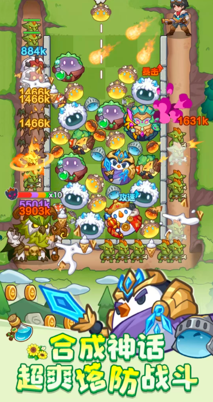3、通过合理的布置守卫来构建防御阵容抵御怪物入侵,相同的守卫可以合成出更强的角色,融合了塔防和合成玩法趣味十足。