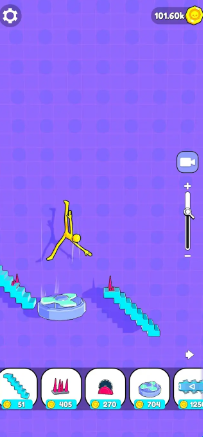 1、游戏规则简单却不平凡。你的布娃娃翻滚、坠落和碰撞你设置的障碍物的次数越多,你收集的金币就越多。
