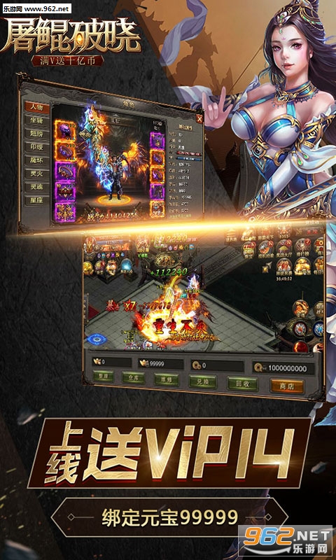 ★创建角色送vip14,99999绑元,10亿绑定金币,充值50元到v15;