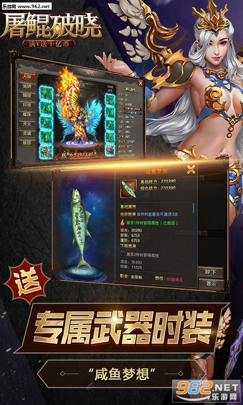 ★上线激活重生,石化等五大戒灵;免费赠送V14专属武器时装“咸鱼天兵”,战力提升快人一步