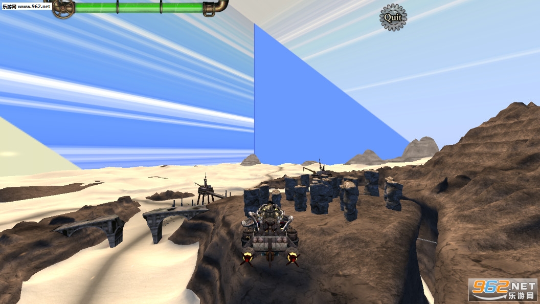 1、游戏采用了尖端的3D视觉效果,带你体验高空飞行的刺激,穿越峡谷沟壑,在灰色的天空飞行;