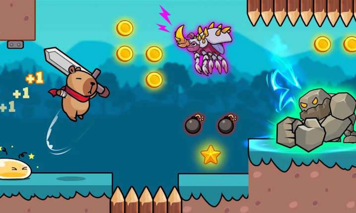 水豚的世界超级奔跑的玩法相较于其他的闯关游戏,不仅创意设计更多,而且游戏画风设计十分可爱,水豚的形象丰富多变,并且它们都拥有自己独特的技能和属性,还配备了十分有趣的武器装备,在帮助玩家们完成各种挑战的时候不仅可以获取丰厚的奖励,而且还可以解锁全新的关卡地图和道具,无聊了就为你的水豚换一个全新的形象,更有新鲜感了。