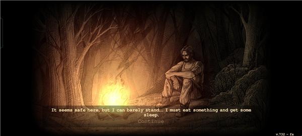 4、这个时候应该有狼出现了,狼比较可恶,无论你是否成功杀了它,你都有一定几率断胳膊断腿,这是致命的,没有食物和药物恢复基本就死定了,如果不能逃走,就强制退出吧,重启游戏就好了,往后可以用这个方法到达很多地方,除非你因为其他原因死去。
