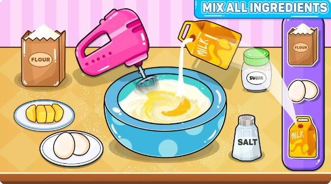厨房总动员Kitchen Set Cooking Games DIy是一款模拟做美食的小游戏,进入游戏后根据任务提示来制作美味可口的食物喔!在制作过程中每一步都是非常讲究的,现货顺序、比例、烘焙时长都会影响其美食口感喔!全程个第一人称视角,整体游戏代入感十足,如果你也喜欢厨房过家家游戏那就千万不要错过啦!