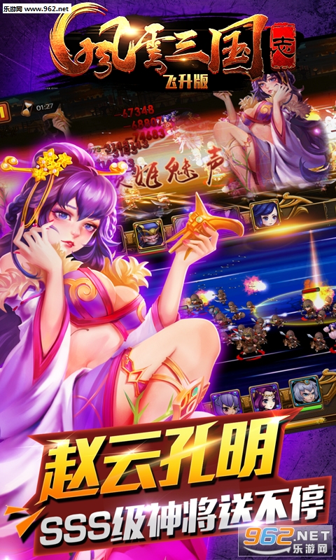 《风云三国志飞升版》震撼来袭!还原真实三国故事,挑战历史经典战役,英雄之路,神秘洞穴,多宝挖矿,官职斗争,世界BOSS等各种各样的玩法让您领略游戏魅力,打造账上三国超级卡牌战斗,快来将三国名将收之麾下吧!!