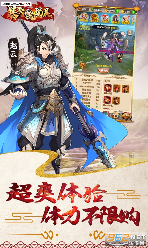 暴揍魏蜀吴超V版是一款原创三国题材策略RPG手游,招募三国名将,挑战经典战役。各种好玩的副本,英雄殿,单骑闯关,血战长坂坡。各种跨服赛事,王者争霸,武斗会,满足你征服三国的野心。
