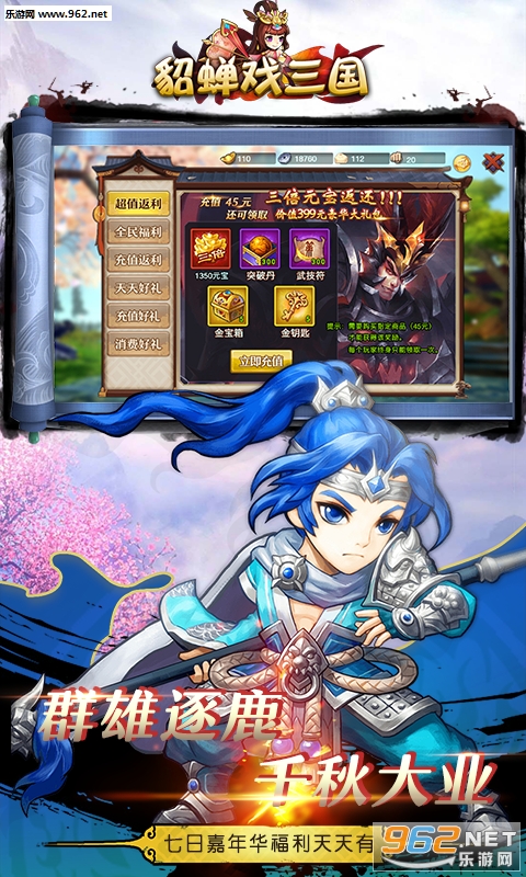 5、超值返利,只需充值45元宝即可领取价值198元豪华礼包。
