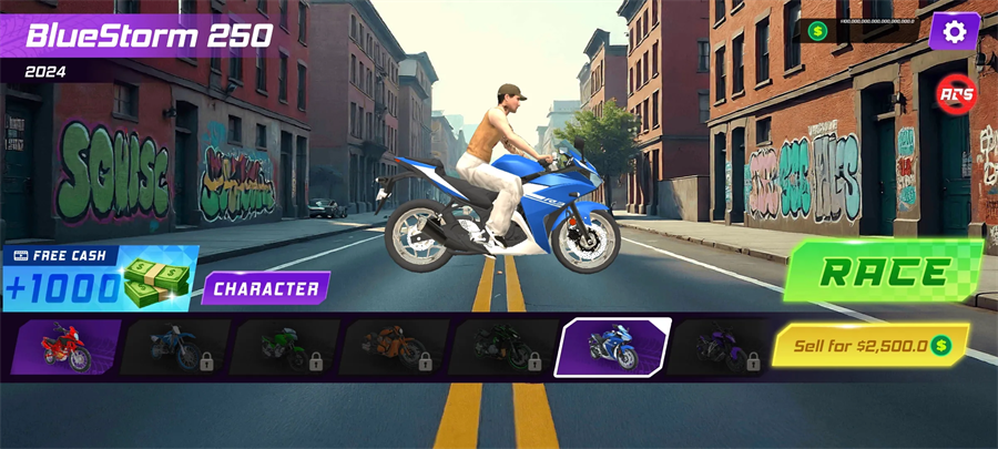 4、解锁摩托车、皮肤和疯狂的特技与其他人竞争,成为真正的后轮离地特技冠军简单的一键式操控。