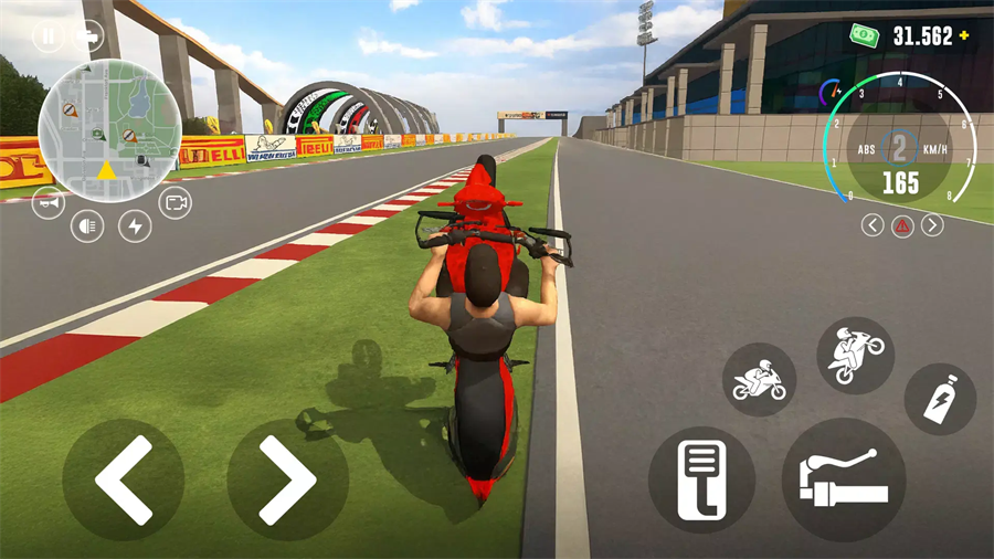 2、用一个轮子骑着你的摩托车飞驰,表演无尽的后轮离地特技在车流中穿梭,快速反应。