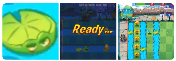 荷叶也是我们的老植物了,和一代二代相比,三代它的阳光花费为0,和小喷菇一个费用,拿来当炮灰用也挺不错的,特别是用来拖延体育生,因为体育生在水里会先砸掉荷叶上的植物后砸掉荷叶。有些关卡卡槽里不会给你荷叶,有时候开局场上就已经种好了(如118关),有时候会被水流送出来(如158关)。