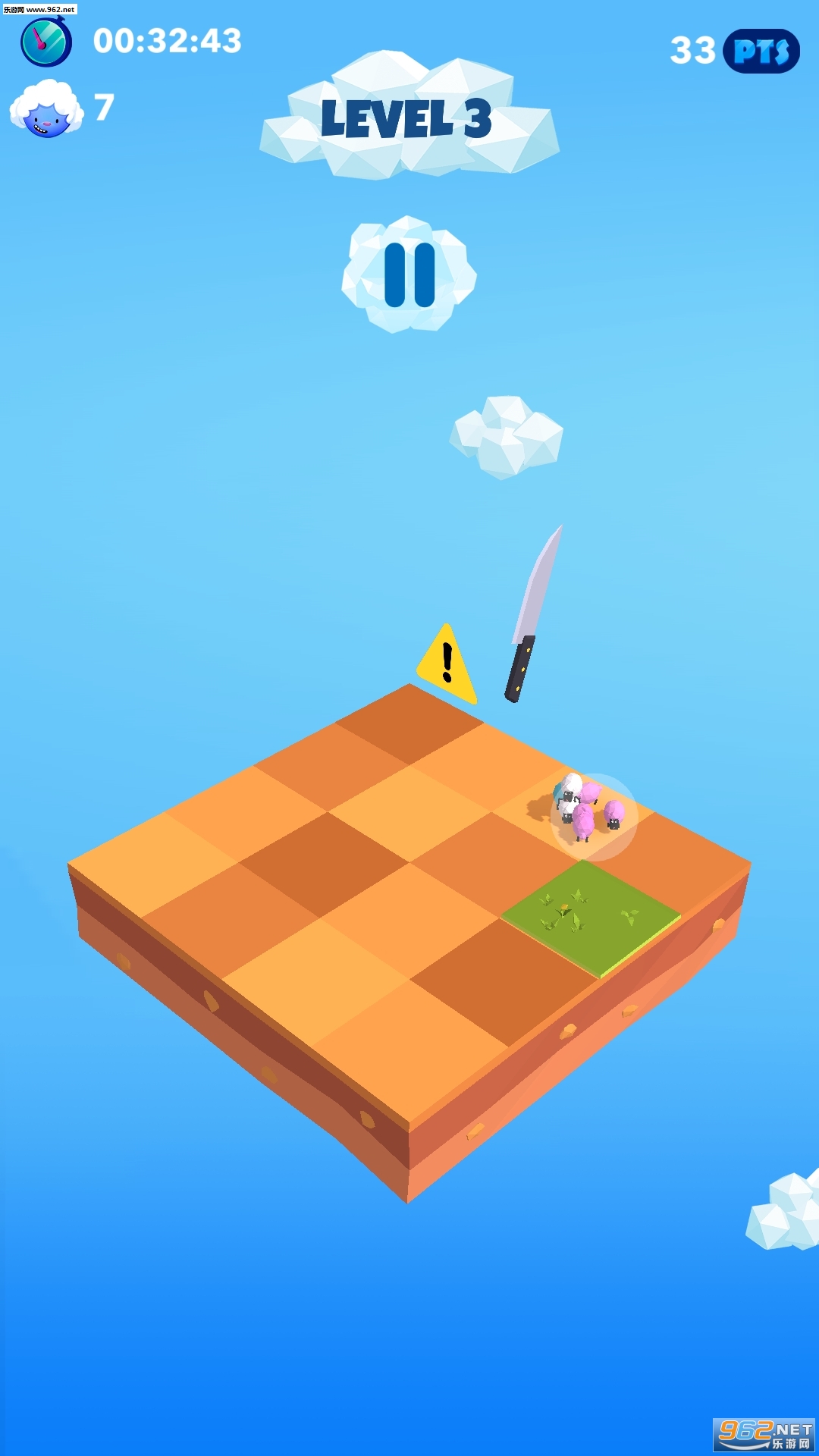 移动你可爱的羊群去吃美味的草,避开野蛮的屠夫,巨型刀和滚动的巨石!