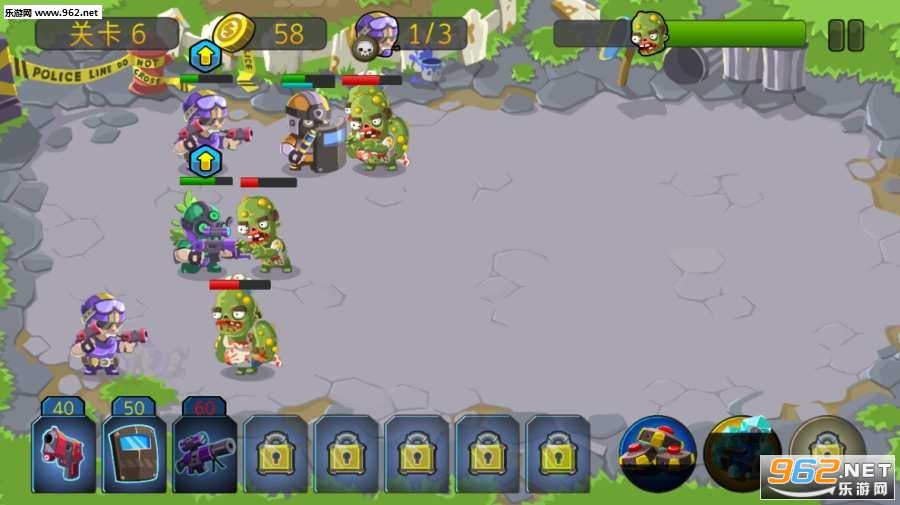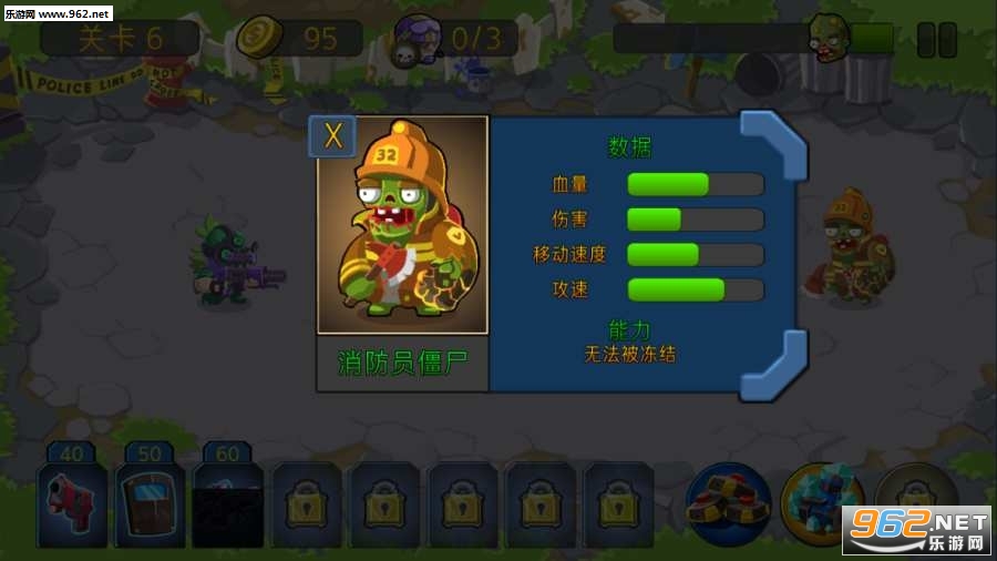 一款有着卡通可爱画面风格的打僵尸射击游戏,在游戏中玩家要做的类似于植物大战僵尸,将不同功能类型的特种士兵按照一定的位置摆好,阻止僵尸的进攻。