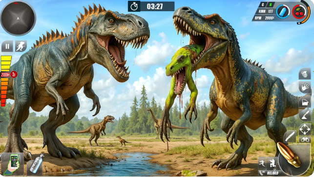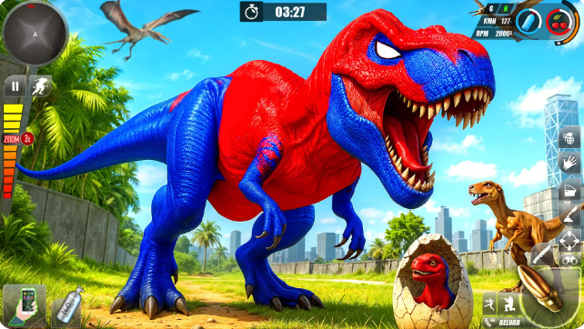 走进恐龙游戏家庭生活模拟的史前世界!踏上惊心动魄的侏罗纪冒险,在这里,你不仅扮演恐龙,还过着完整的恐龙生活。从养育家庭到在野外生存,Dinosaur Games Family Life Sim提供充满探索、冒险和发现的身临其境的体验。探索丰富的恐龙栖息地穿越茂密的丛林、崎岖的山脉、神秘的洞穴和宁静的古老湖泊。环境的每个角落都反映了侏罗纪时代的狂野和未驯服的自然风光,提供令人惊叹的景观供您探索。养育并保护您的恐龙家族体验史前育儿的乐趣和挑战。孵化蛋,养育幼崽,保护家人免受威胁。将您的幼龙培育成强壮的成年人,并在真正的家庭生活模拟体验中领导您的恐龙部落。参与恐龙角色扮演从各种恐龙中进行选择,每种恐龙都有独特的技能和生存特征。
