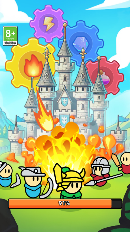 2、升级堡垒以解锁弓箭手、战士、骑士和战象等多种兵种,打造终极防御阵容。