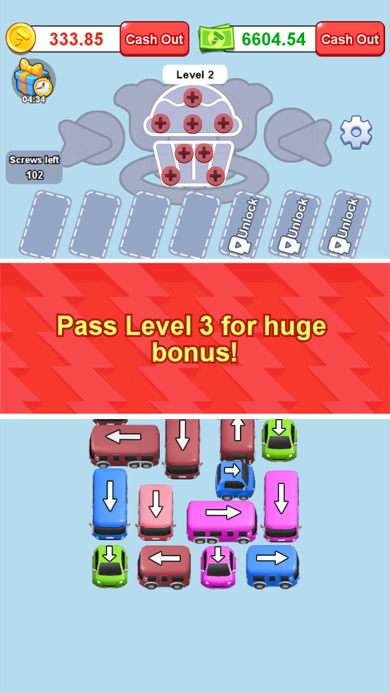 逻辑汽车挑战原名Logic Car Challenge,是一款休闲益智小游戏,它将汽车堵塞场景的兴奋与引人入胜的螺丝分类挑战相结合。玩家的任务是通过战略性地移动汽车来清理路径,从而应对棘手的停车情况。每辆被释放的汽车都成为解决后续难题的宝贵资产,这些难题围绕着运输螺丝和拆解复杂模型展开。快来下载试试吧。