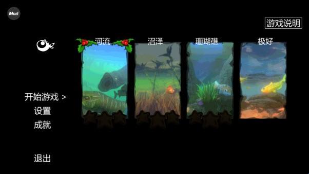 3、可以选择多种鱼类来吃其他小鱼来发展,一边浏览美丽的风景,一边玩游戏,游戏非常有趣,休闲而有趣!