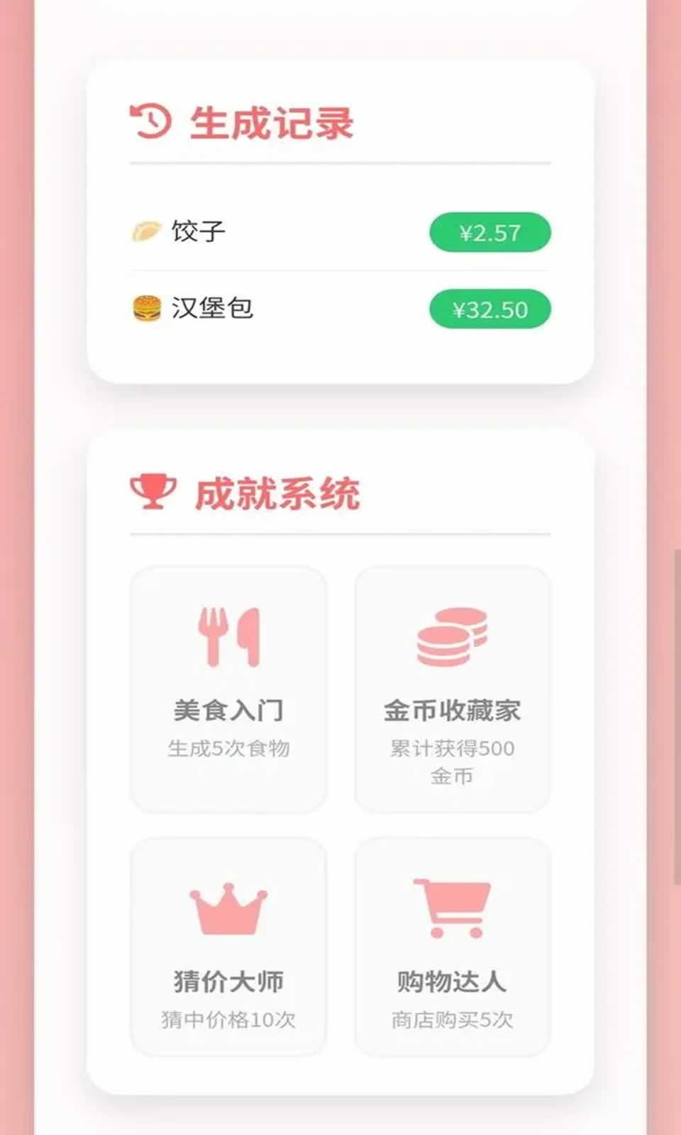 3、生成后,系统会根据美食价格返还部分金币(如价格×0、5倍),赚多赚少全看运气!