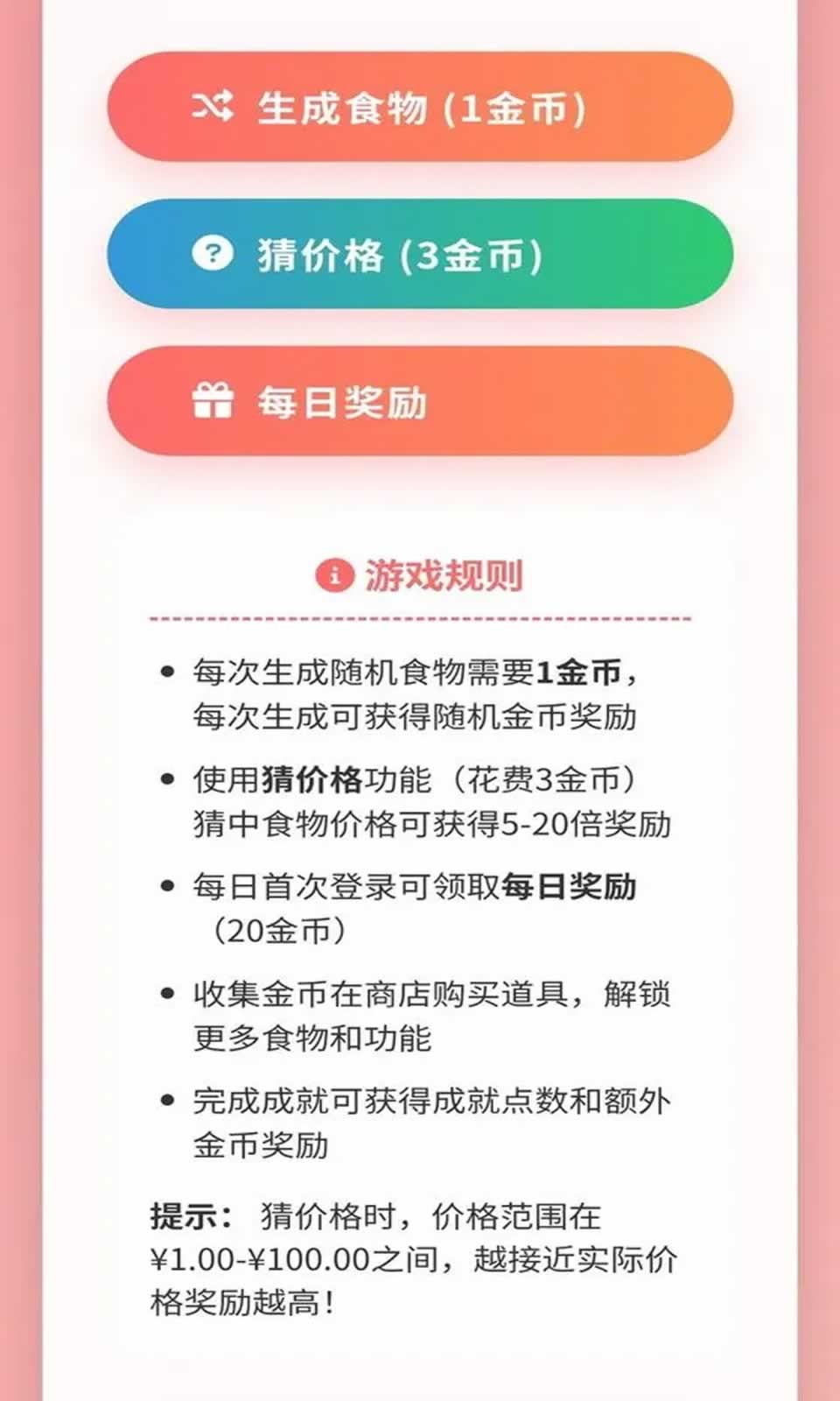 4、遇到喜欢的美食,可花费3金币参与“猜价格”小游戏。输入你预测的价格,与实际价格越接近,奖励越高(最高20倍回报!)。