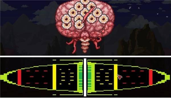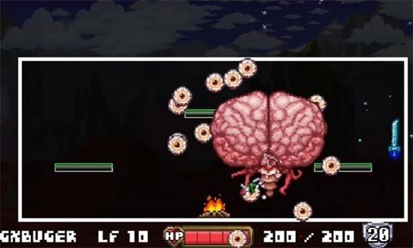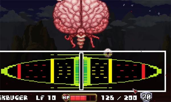 传说之下克苏鲁之脑引用了很多极具创意的克苏鲁神话元素,并将传说之下和泰拉瑞亚的很多精彩剧情设定融合在一起,玩家要想打败强大的克苏鲁之脑,就需要不断的闯过面前设定了诸多冒险挑战的关卡,游戏采用经典复古的像素风格设计,在紧张惊险的游戏氛围和充满神秘感的背景音乐中,更为玩家们增添了不少冒险的刺激。