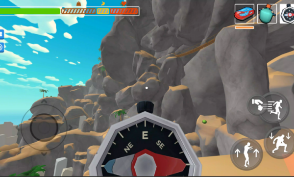 1、进入游戏后,左侧的摇杆控制人物移动,右侧可以加速、跳跃或者蹲下。