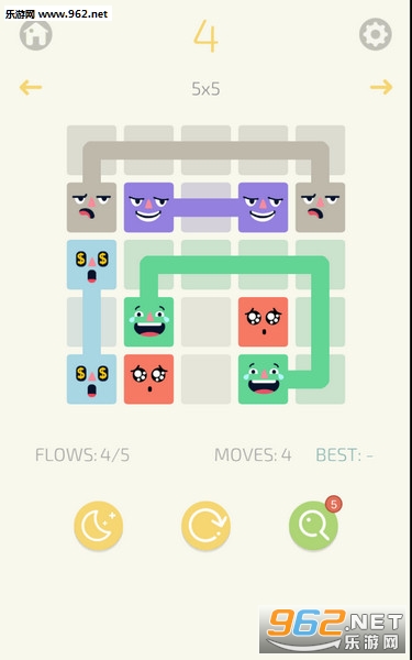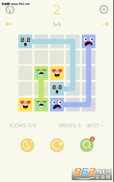 2、游戏的操作玩法非常的简单,使用线段将关卡中相同表情的方块连接即可,注意线段不可交叉;