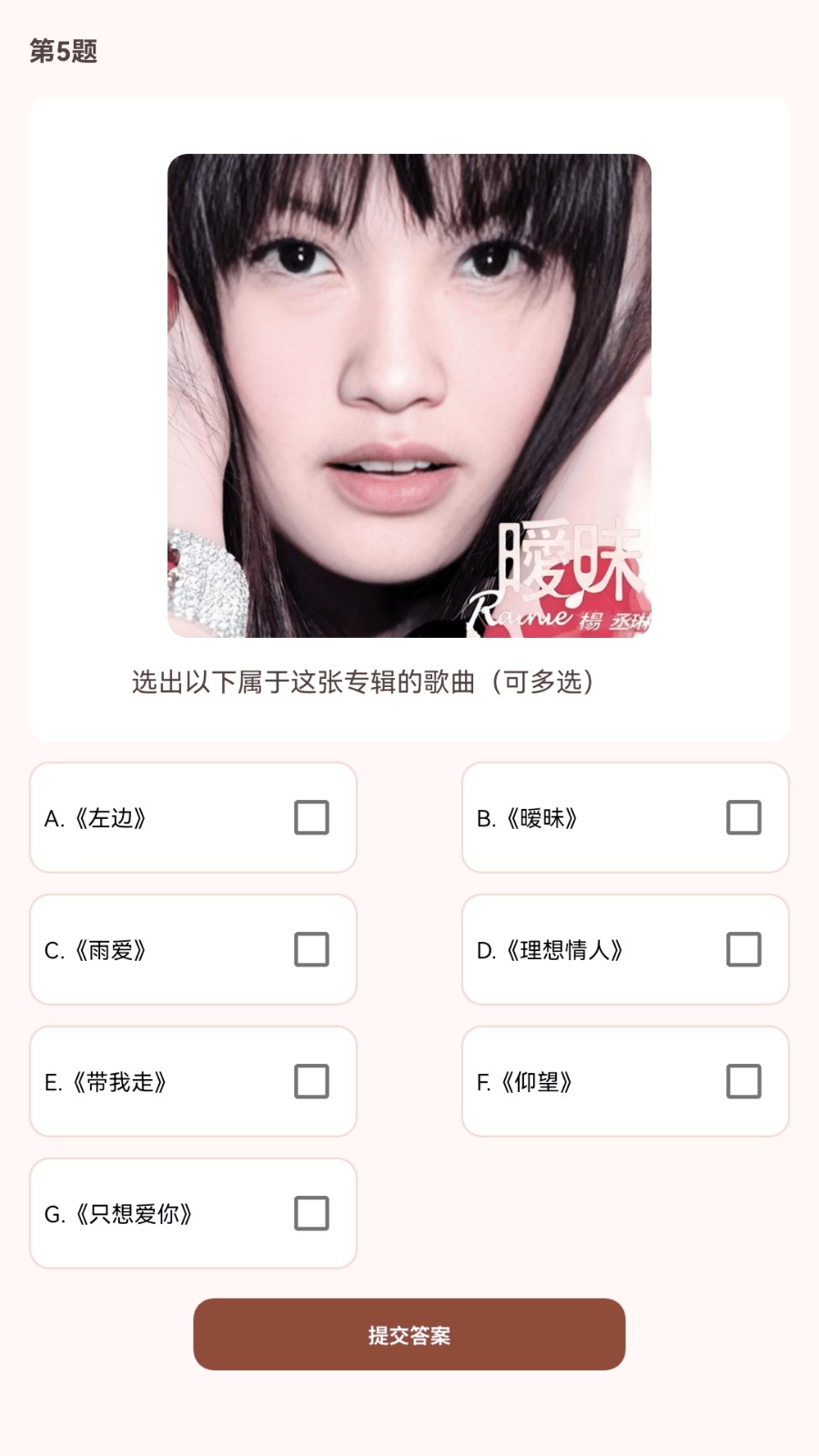 3、答题可是不存在时间限制,可以慢慢的挑战,还能依据歌曲旋律,以及歌词猜一下。