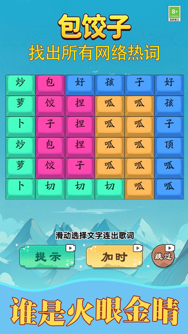 这是一款歌词连线玩法的休闲小游戏,玩家需要识别歌曲的部分歌词,并画线将其连接起来才能挑战成功,享受挑战和音乐的乐趣!
