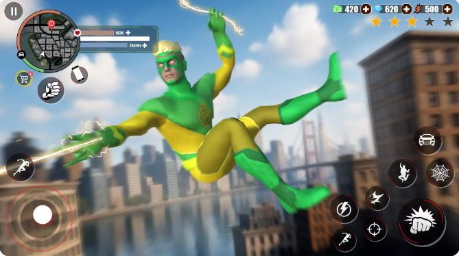 超级绳索英雄:罪恶之城游戏中玩家们将扮演一名城市英雄,肩负着守护城市安全的责任!根据上级下达的任务,穿梭于城市各个角落,借助地图快速锁定敌人所在位置,使用武器将其消灭!每完成一次任务其战力值以及装备都会有所提升,游戏玩法简单易上手,你准备好迎接这次挑战了吗?