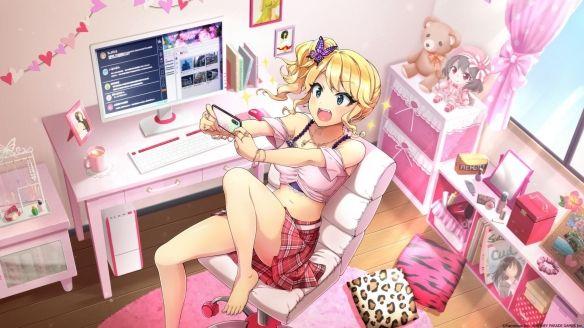 咲宫入华是KIRISHIMA的新人,在游戏中担任「骑手」的位置,由于对「喷射对战」有很高的憧憬,平时努力不懈的夸张训练,也会让身边伙伴感到惊讶。另外,咲宫入华本身也是一名吃货,不过自己似乎有注意到这件事,对于是否吃太多这点,导致她很在意自己的体型。