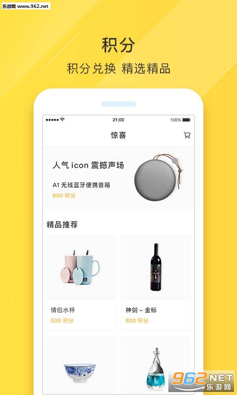 惊喜:即积分商城,每次消费都会产生相应积分,累积的积分可用于在积分商城购买心仪的小商品,惊喜连连!