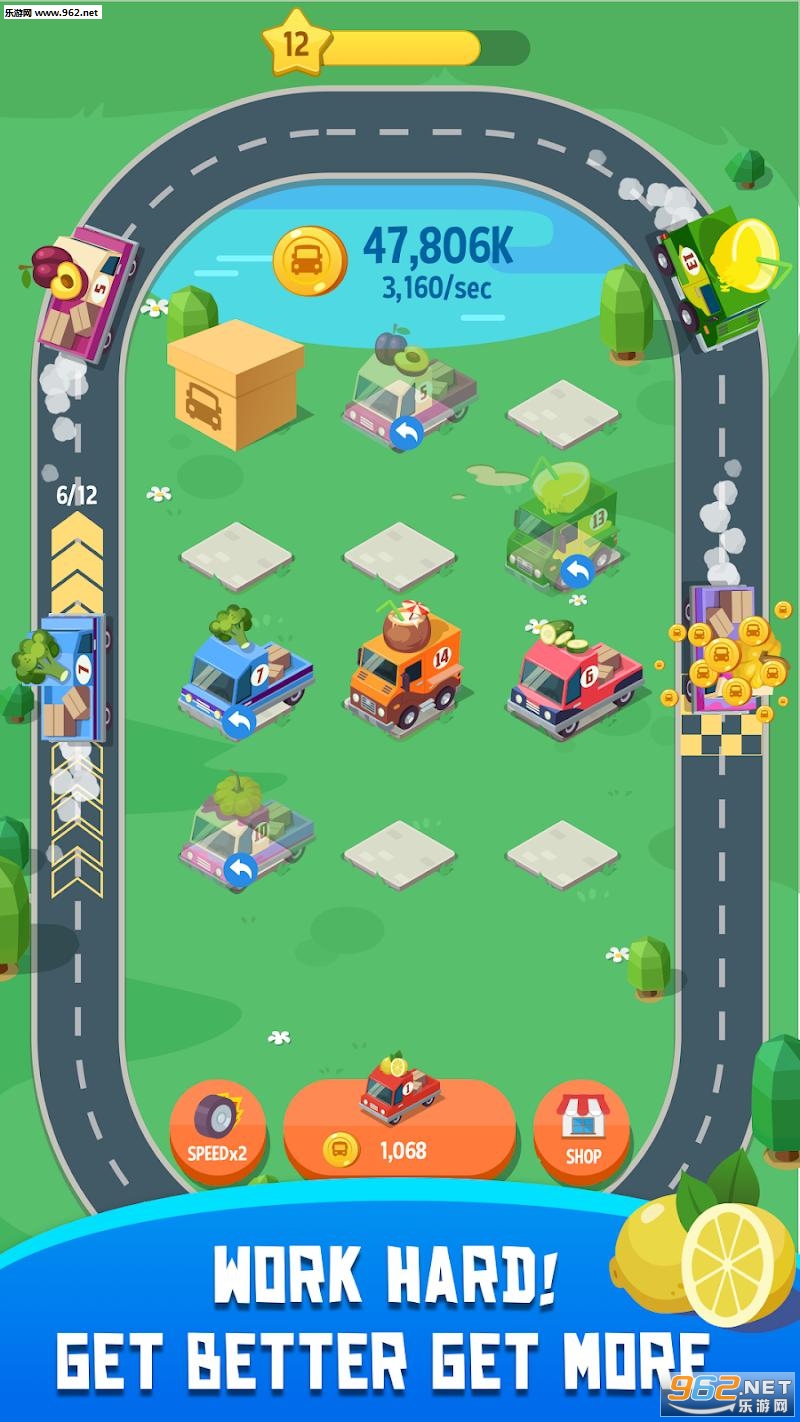可以说是另一种意义上的合并游戏,玩家所需要做的就是不断的将赛道上的车辆进行合并获得更高的等级以赚取更多的金钱..总体上来讲,有些无聊- -。