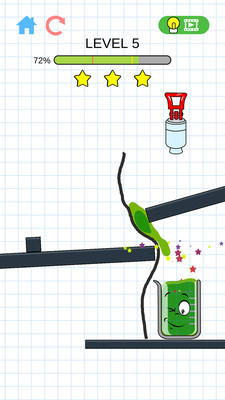 《快乐玻璃杯之引流实验游戏安卓版》是一款最近很受欢迎的物理划线游戏,清爽简洁的游戏画面,简单清新的配色都很让人放松,游戏的玩法也很简单,玩家只需要在屏幕上划线,让液体进入杯子,把杯子盛满就可以过关了,但是划线的时候需要注意,线条不能穿过物体,不能悬空,否则,线条会掉下来。