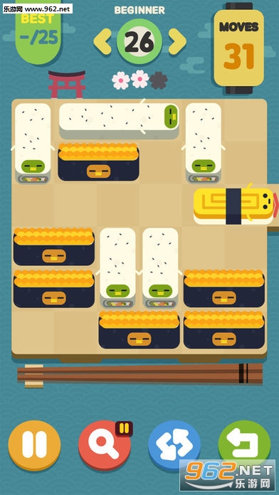 段位和关卡级别越高,游戏难度也会随之升级。玩家可根据自身对游戏的熟练程度完全自主选择适合自己的段位,不会出现因 为难度过高而屡次失败的挫败和尴尬,令人在玩游戏的同时找到成就感。寿司华容道精彩内容想方设法将寿司传送出去!