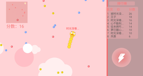 4、一切都准备好了之后,就可以操控着你的蛇蛇去四处吞食能量体,借此快速成长。