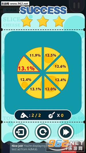 一款对于处女座来说能够堕入万丈深渊的休闲类游戏,玩家需要以不同的角度将奶酪分为规定的块数,并尽量的保证每一片奶酪的面积相同~待你切完之后会有完整的数据分析..所以对于强迫症玩家来说,这可能是一个好游戏,也可能是一个噩梦。