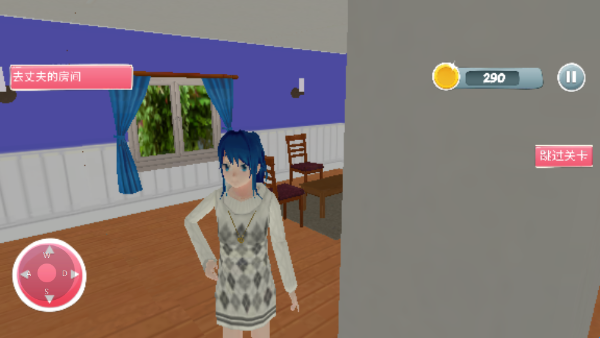 2、跟着游戏人物去走,首先拿起喇叭对女儿和丈夫叫醒服务。