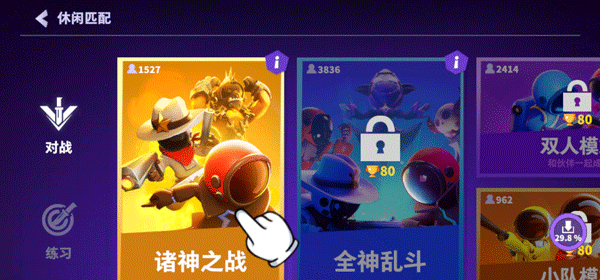 3、调整好后,选择游戏玩法,游戏现有诸神之战、全神乱斗、双人模式、小队模式等玩法;