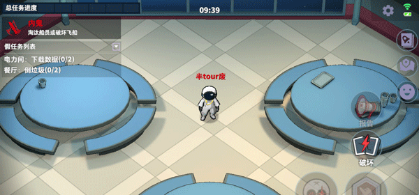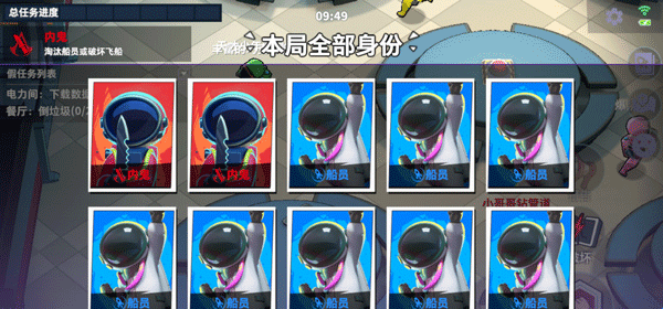 4、进入游戏后,玩家将同包括自己在内的10名玩家同台竞技,每个人都会随机获得一新身份,船员任务是修理飞船找出内鬼,而内鬼的任务则是破坏飞船,并袭所有的船员;