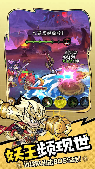 boss入侵?讨伐队出击!飞天遁地的妖王神出鬼没,霸占至宝。率领你的专属小队挑战强大boss夺取至宝。横扫九九八十一难,进阶终极大妖!