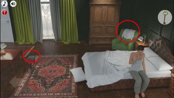 3、玩家可以在不同的房间里进行不停的探索,找到各种有用的物品,把所有的线索结合在一起,进行破案。