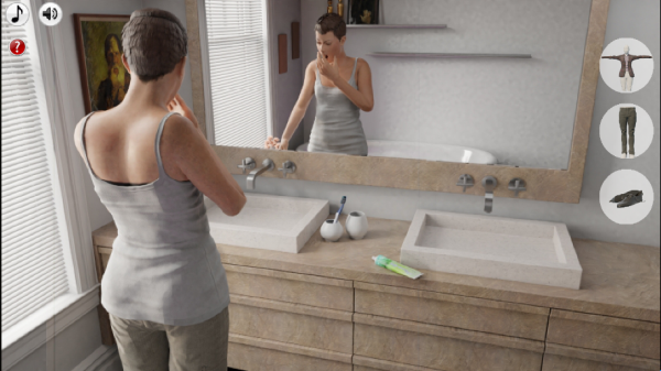 7、刷完牙从浴室出来,点击穿上衣服,点击图示箭头即可出房间
