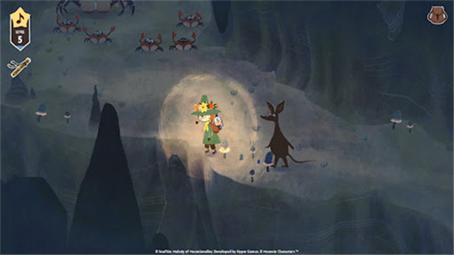 2、用好手中的口琴,施加一点小小的潜行技巧,还有一路结交的好友助阵,足以把严苛的公园管理员和他那毫无美感的产物请出姆明山谷。