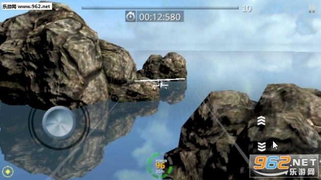 2、你需要驾驶飞机穿梭峡谷之间的绿色圈圈,小心不要撞到山上