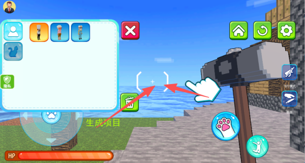 1、进入游戏之后,点击屏幕上的“+”,可以生成不同的项目。