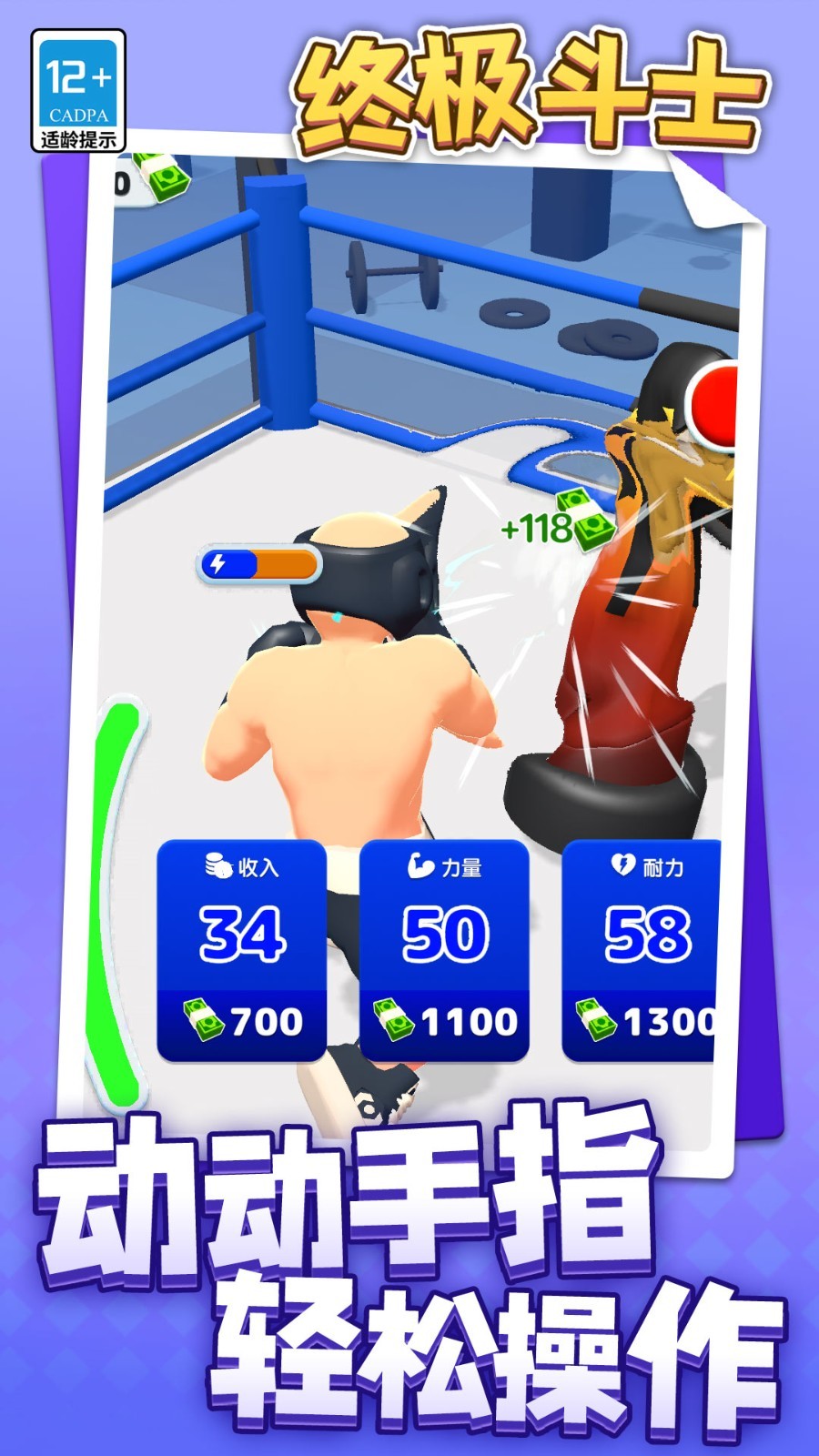 《终极斗士》是一款优质趣味的3D卡通风格格斗对战游戏,在这款游戏中玩家将扮演名叫锤子哥的拳击手,通过不断的击打沙包袋来赚取金钱,购买更加专业的拳击装备,挑战职业拳击手,丰富新颖的玩法内容等待玩家来体验感兴趣的朋友就快来下载体验吧!