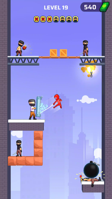 4、凭借快节奏的动作、具有挑战性的玩法和令人惊叹的图形,这款移动超休闲游戏一定会让你流连忘返几个小时。那你还在等什么?开启你的网络射击游戏,开始跳跃、摆动,一路瞬移奔向胜利!